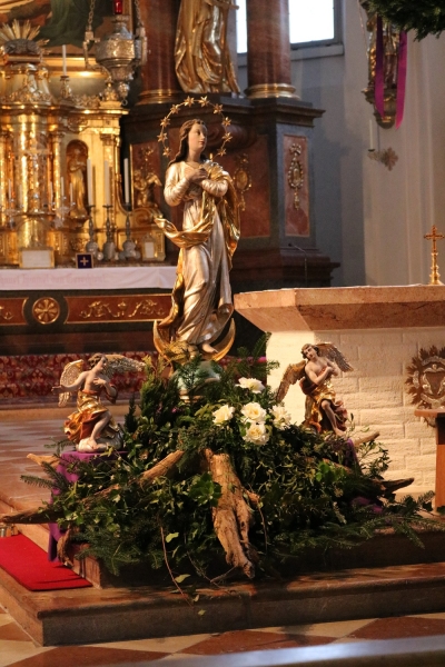 Der Barbaramarkt am Sonntag wurde wieder gut besucht. Die Kayer Sängerinnen und die Eckbankmusik sangen und spielten in der Stiftskirche weihnachliche Lieder und Waisen.