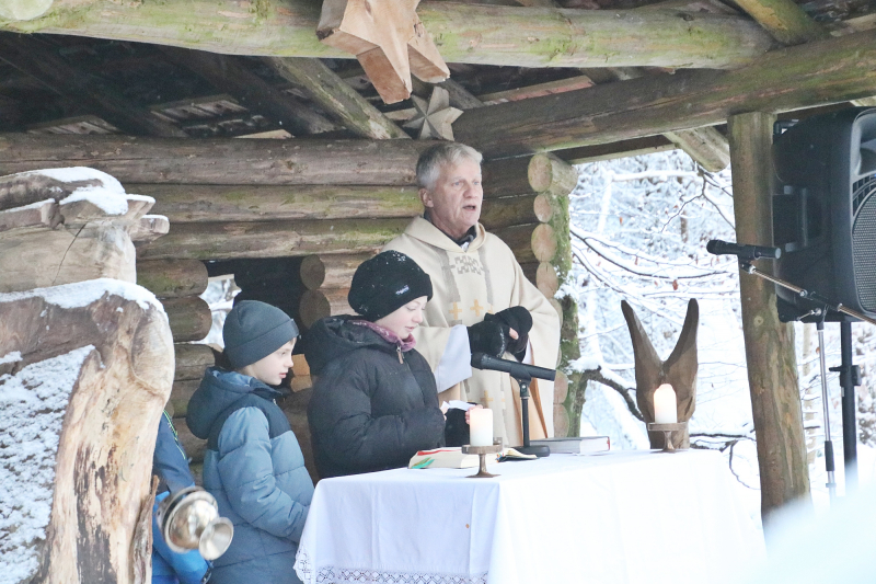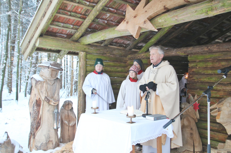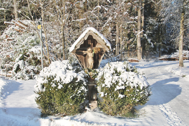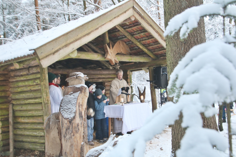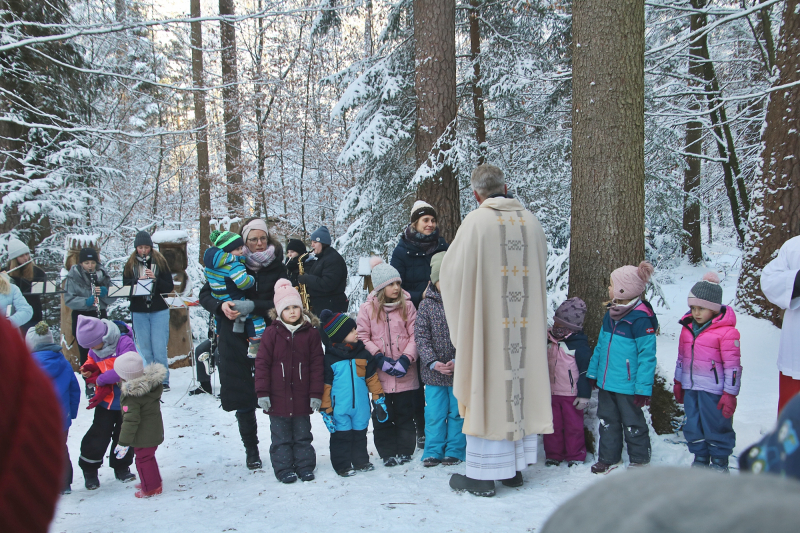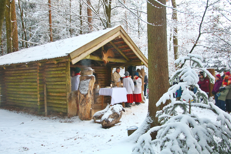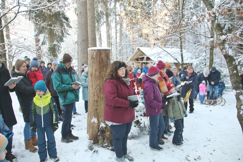 Die Familienkrippenfeier in Meggenthal fand bei schönstem Wetter mit Sonne und Schnee beim Walderlebnispfad statt. Pfarrer Gerhard Gumpinger leitete die hl. Messe mit anschließendem Familiensegen. Einige junge Bläserinnen von der Stadtkapelle Tittmoning sorgten für die musikalische Gestaltung. Familie Staudinger kümmerte sich im Vorfeld um’s Schneeräumen und auf ihrem Hof fand hernach noch ein kleiner Imbiss statt.