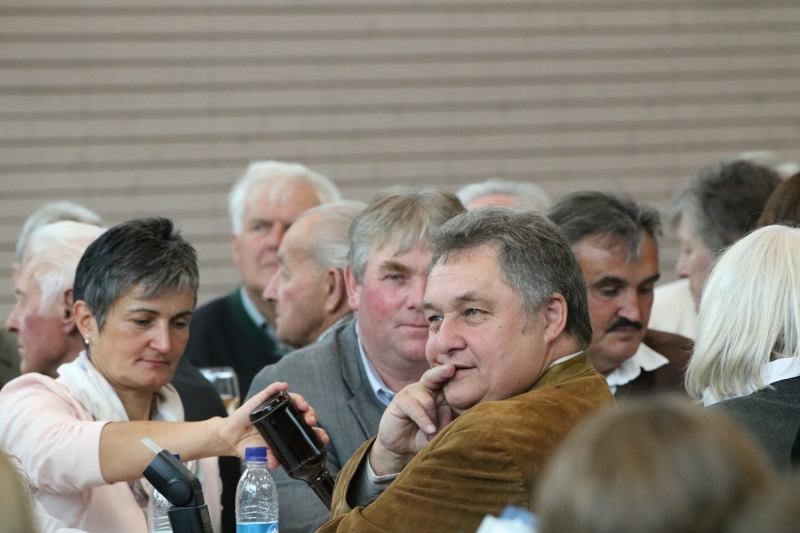 Die Reichart Marianne feierte ihren 90. Geburtstag, sie hat den Vorstand eingeladen. 1. Vorstand Adolf Hochpointner mit Frau und Paul